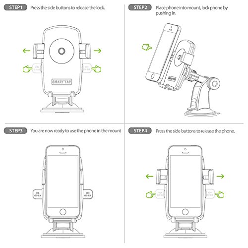 Easy one-touch mounting system locks and releases the device with just a push of a finger