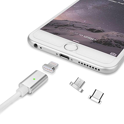 - UNIVERSAL COMPATIBILITY -- One for all. 1 magnetic phone charger cable compatible with 3 magnet adapters for iPhone Lightning Android Micro Usb & Work with the new USB Type C devices.Double-sided charging reversible port,Either way you can charge. No need to concern which way to plug in anymore.