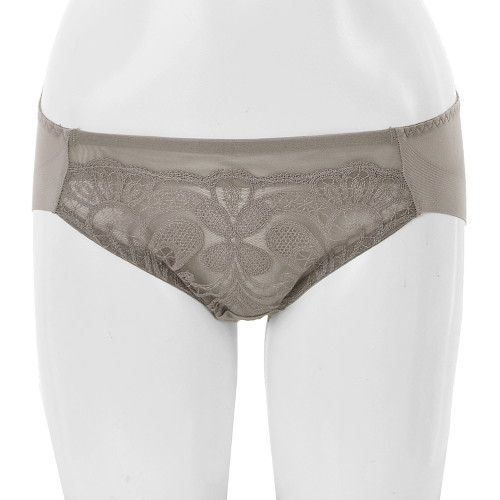 유니크하고 가벼운 자수와 네크의 크로스 포인트 처리된 망사 디자인이유니크한 멋을 돋보여주는 여성 헴 라인 팬티입니다.겉옷을 입어도 라인 자국이 드러나지 않아 데일리 팬티로도 유용합니다.