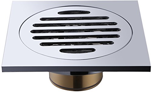 Square Shower Floor Drain, Frascio Brass Bathroom Tile Insert Floor Drainer with Removable Strainer Cover Chrome Finish Anti-clogging for Kitchen, Washroom, Garage and Basement(4" 4", Removal Grate)