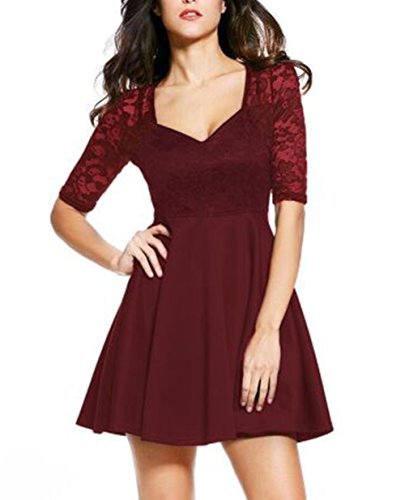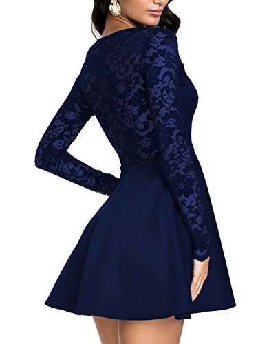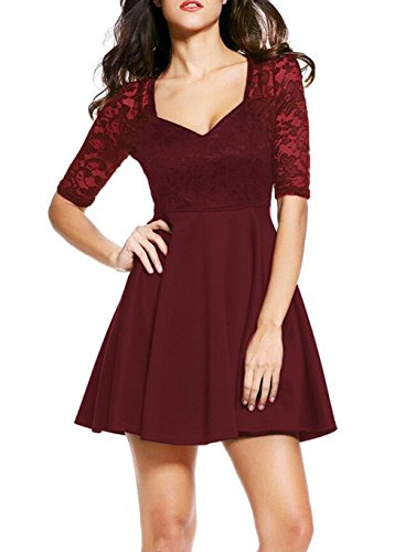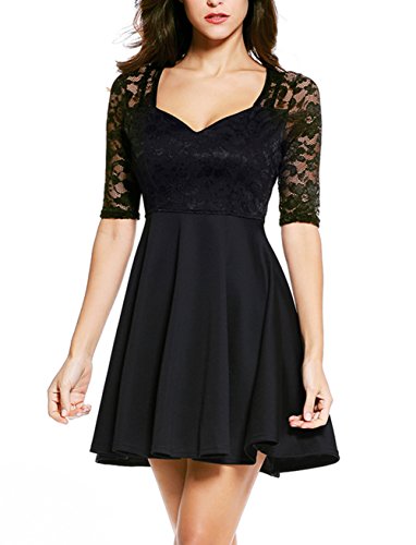 This Black Lace Bodice Skater Dress is sure to turn some heads by the body-flattering shape which only stands out your advantages while cover those you unwanted to show in public. Partial lined. The lace overlay bodice and sleeves add you femininities, low cut mild neckline and fluttering skirt the lower part.