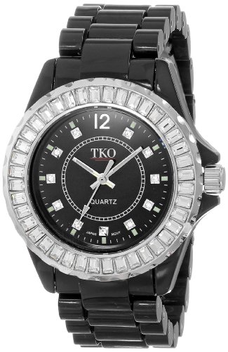 TKO ORLOGI Women's TK608-BK Ceramix-Ice Black Acrylic Crystallized Bezel Watch