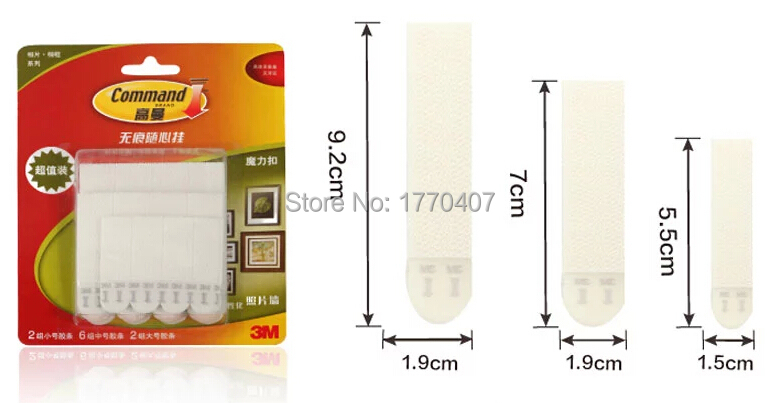 3M Command damege-free velcro magic lock command Picture hanging Strips S-4pcs ,M-12pcs, L-4pcs total 20pcs.