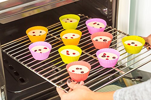 - ☆100% ECO Frienly And Dishwasher Safe - Use EASY TO WASH, EASY TO RELEASE, NONSTICK silicon muffin cups instead of messy paper liners. Oven, microwave safe with up to 450 F. Freezer safe up to -40 F. Save your money and save environment with our silicone cupcake holders!!!