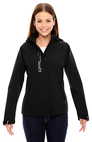 Binding : Apparel Product Description 8,000 mm waterproofness/800 g breathability ?; 3-layer performance stretch soft shell; 95% polyester/5% spandex with 100% polyester, 9 oz./yd2/305 gsm; warmth attributes::; inside placket with storm flap; brushed tricot-lined collar and pockets; thermal retention shockcord at hood and hem; laser cut and welded chest pocket and lower pocket ; rigid peak zip-off hood with adjustable back tab; embossed print at shoulders and hip side panels; underarm vents; shockcord at hem with access through front pockets; 0