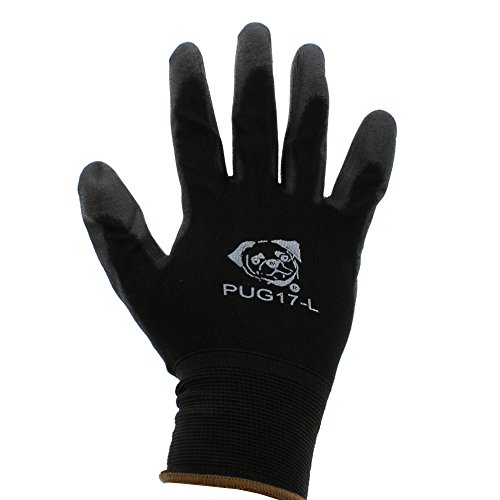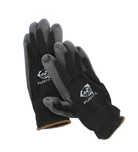 Global PUG Work Glove PUG17L Polyurethane/Nylon Glove, Work, Large, Black, (12 PAIR)