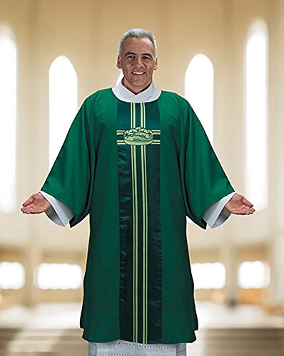 Studio : AT001 Publisher : AT001 Binding : Jewelry Product Description Dalmatic matches the Lucia Collection of chasubles, stoles and banners. Dyed to match Velcro® side closures for a non-slip fit Includes matching inner stole Digitally printed orphrey matching banners Polyester/satin material -- Polyester -- 59" x 48" L 0