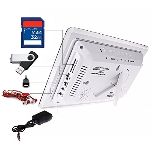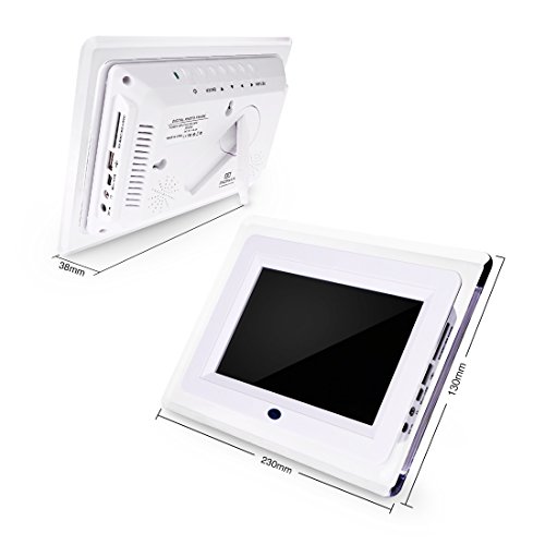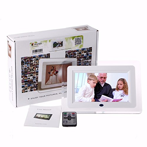 -. Binding : Electronics -. Brand : INSMA -. EAN : 6372904798616 -. Feature : MAIN-FUNCTION : Owns photo, music, movie, clock, calendar, alarm clock, time-switch, video output functions, all is very useful in daily life / MULTI-FUNCTION : Support Card:MMC/ SD (Except Magic Gate SD card ),Power: Rating: DC 9V 1.5A,Consumption:10W / HIGH DEFINITION:Resolution:800 x 480,Video Format:MPEG1/2/4,VOB,DAT,Photo Format: JPG, JPGE,BMP, GIF. Audio Format: MP2/3,WMA / CONVENIENT:Coming with a remote control, convenient to view your favorite video clips and listening to your favorite tunes / LCD DISPLAY: Convenient auto power on/off feature with versatile scheduling - perfect for use in the office or as automated digital signage display. -. Label : INSMA -. Manufacturer : INSMA -. Model : INSMAEE0npc31d -. MPN : INSMAEE0npc31d -. PackageQuantity : 1 -. PartNumber : INSMAEE0npc31d -. ProductGroup : Photography -. ProductTypeName : CAMERA_OTHER_ACCESSORIES -. Publisher : INSMA -. Studio : INSMA -. Title : INSMA 7 Inch TFT-LCD Remote Control Digital Photo Frame MP3 Player Alarm With LED Light 7 Color White