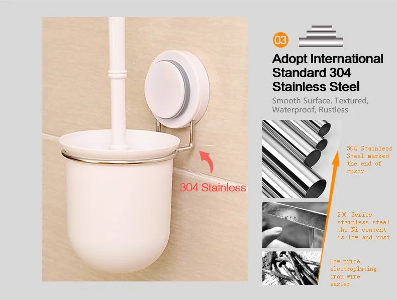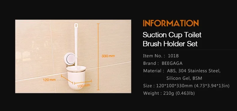 BEEGAGA Wall-Mounted Powerful Suction Toilet Brush Holder Stainless Steel Rack Plastic Bathroom Accessories Cleaning Brush Sets