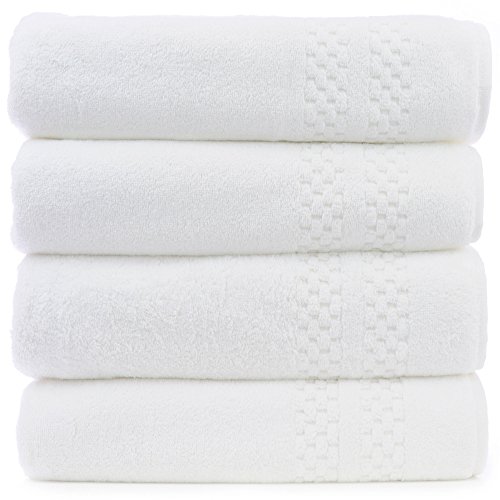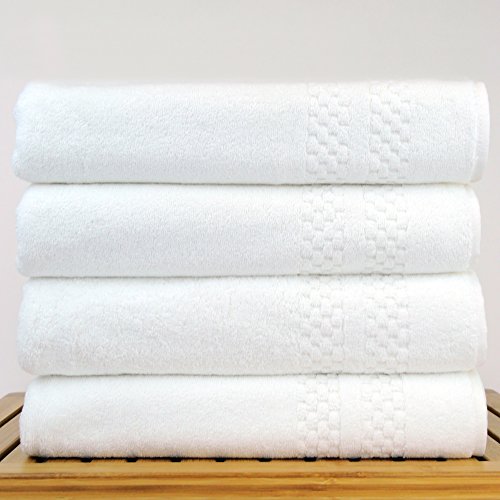 Chakir Turkish Linens Checkered Pattern Turkish Cotton White Bath Towel (Set of 4)