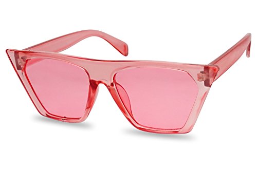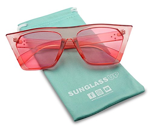 SunglassUP Super Flat Top Square Pointed Cat Eye Candy Colored Crystal Sunglasses Transparent Frame