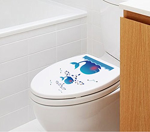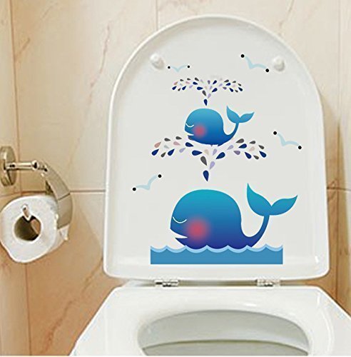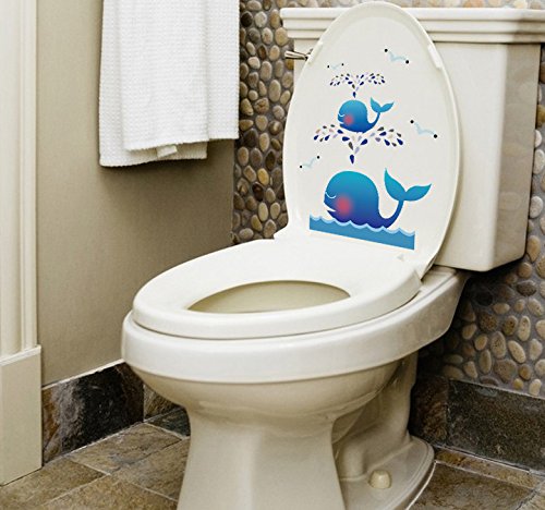 Mziart Cartoon Toilet Lid Cover Stickers For Kids, Waterproof & Removable Stickers for Restroom wall decals - Cute Spray Whale