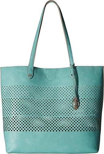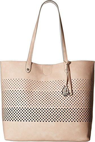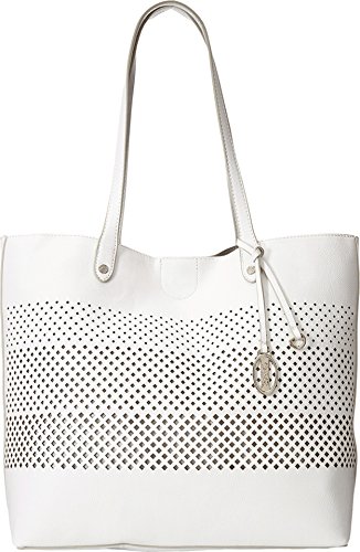 Magnetic snap clsoure. Dual flat shoulder straps. Exterior features hanging brand charm. Flat base. Lined interior. Imported.