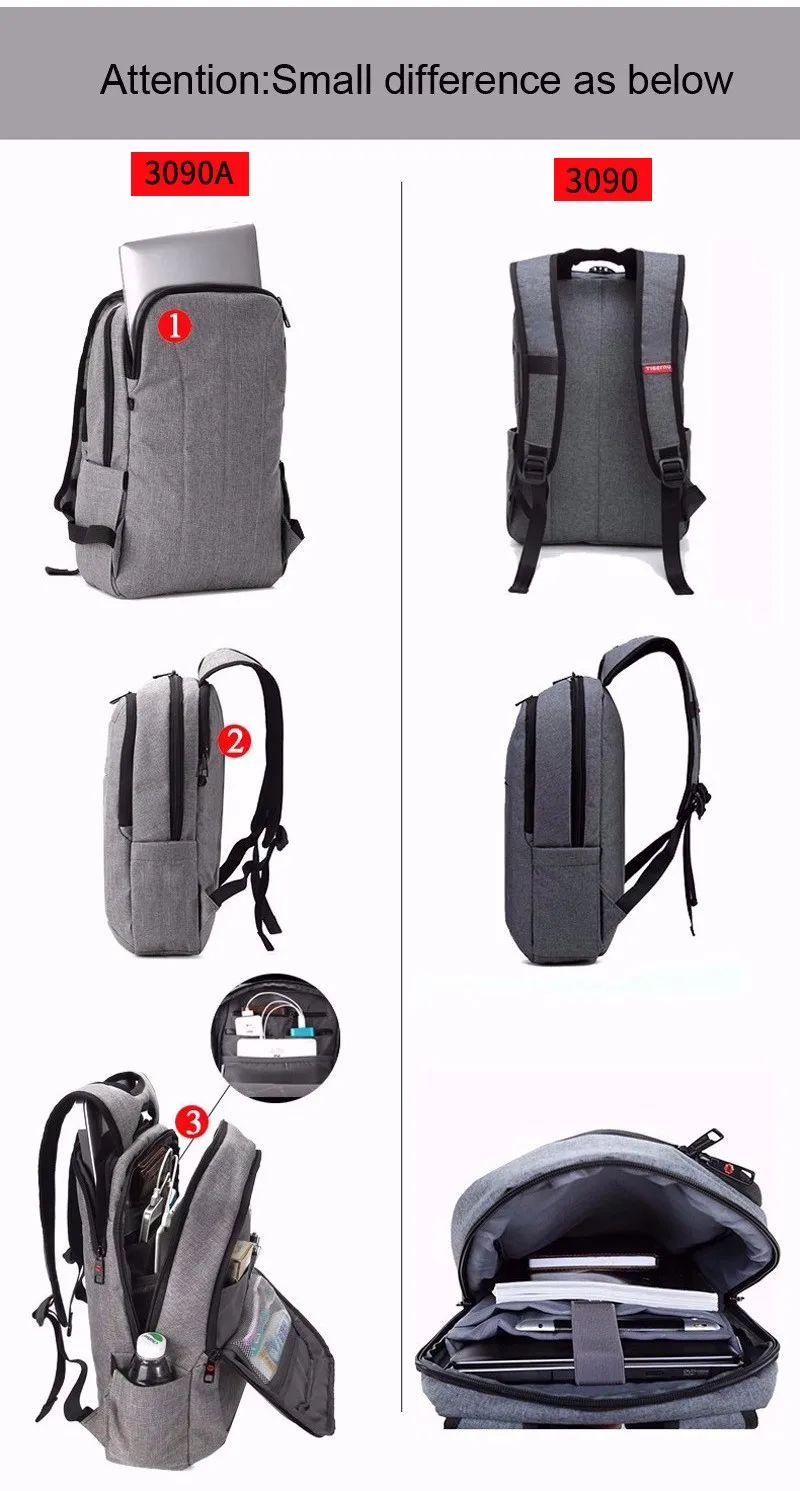 Notice:T-B3164 Laptop compartment size 14inch:W24*L32 cm 17inch:W26*L40cm please check your laptop size. |