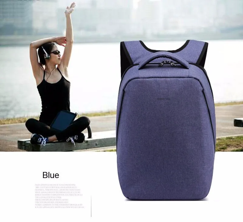 USB backpack color:black,gray size:14/17inch