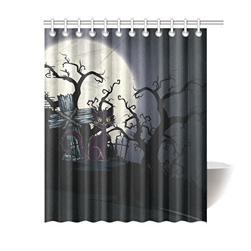 -. Title : Happy More Custom Halloween Cemetery Cat Bathroom Waterproof Fabric 60x72 inch Shower Curtain