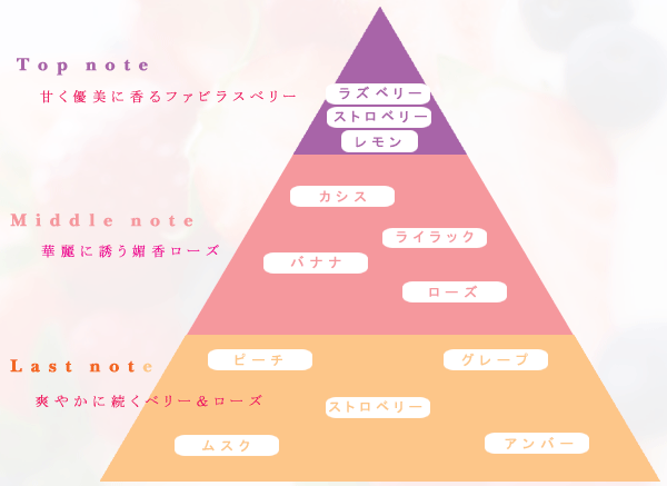 甘いベリーから優雅なローズの香りへの移り変わりは、