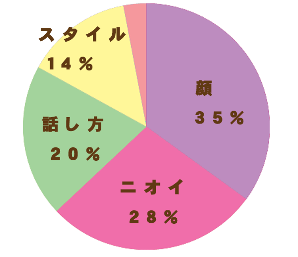 ![]() 1位.顔 …35人 2位.ニオイ…28人 3位.話し方…20人 4位.スタイル…14人 5位.その他…3人 顔の次にランクインするとは... てコトは、どんなに外見に気を配っても ニオイがダメじゃぁ意味ナシってコト!! |