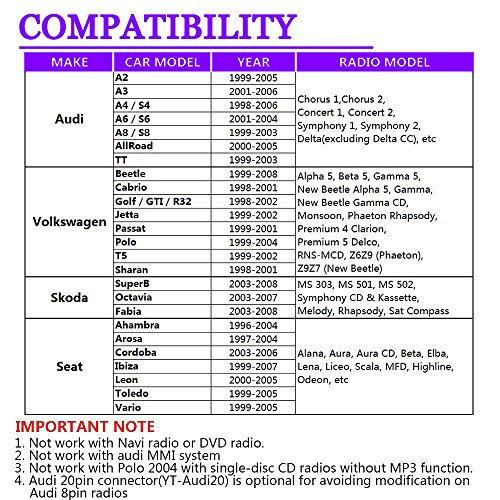 Not work with Polo 2004 with single-disc CD radios without MP3 function