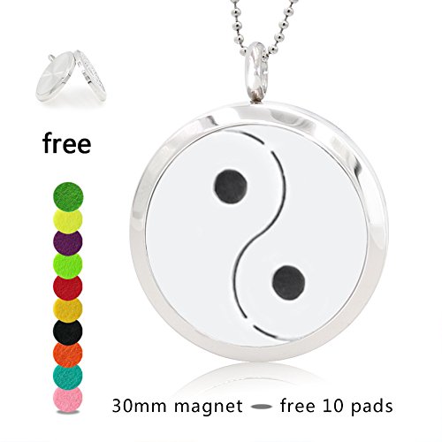 Silver Essential Oil Diffuser Necklace- YouMiYa Qiankun Shape Aromatherapy Essential Oil Diffuser Locket Magnetic Perfume 316L Stainless Steel Pendant For...
