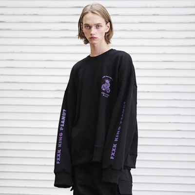 Information 제품명: 피넛 오버사이즈 스웻셔츠 맨투맨 / PEANUT OVERSIZED SWEATSHIRT 상품코드: MFECR003 색상: Black 소재: Cotton100% 제조사: Ver Company 원산지: Made in Korea 사이즈 : M, L