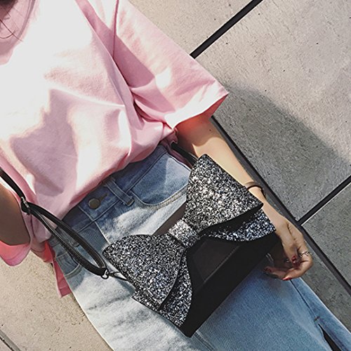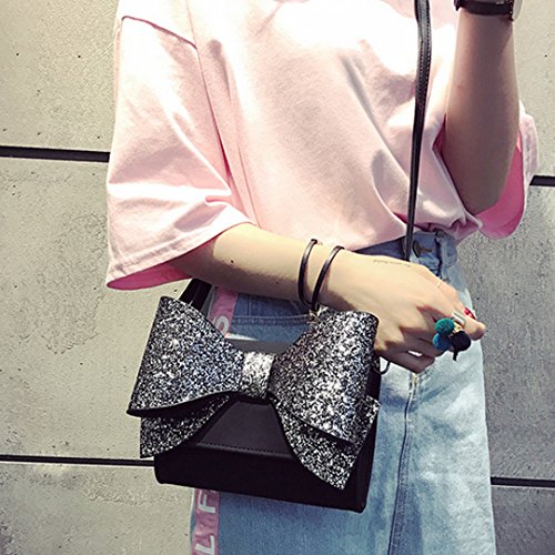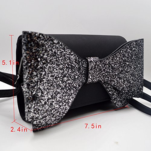 -. Feature : Material:High quality PU,Lining:Polyester / Fashion sequin design,with bowtie design,an adjustable strap, can be used as handbag,clutch,shoulder bag or crossbody bag / Size:7.5 x 5.1 x 2.4 in/19 x 13 x 6 cm / Designed for womens and girls to hold cell phone, tickets, changes, cards and little things / Great to match your dress,t-shirt,jeans and any outfits