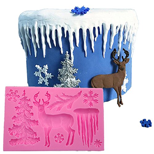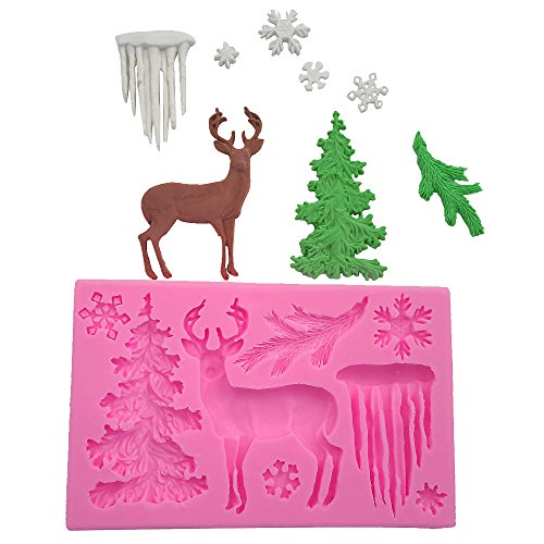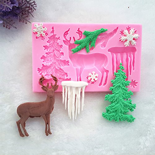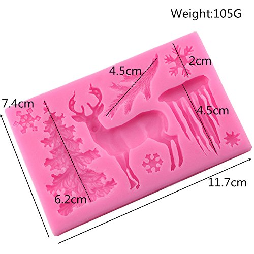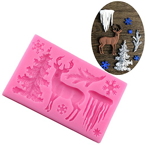 Wocuz 3D Christmas Theme Deer Silicone Fondant mold Snowflake Suger Cake Molds DIY Chocolate Cookie Tool, Pink