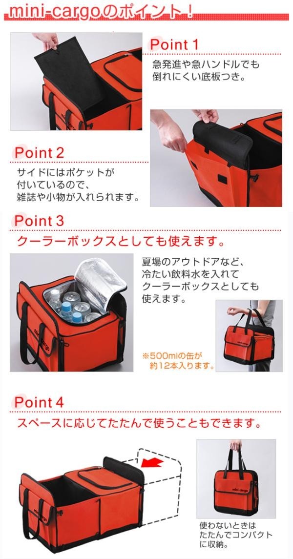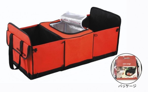 | クーラーボックス付でとっても便利です。アコーディオン式だから、スペースに合わせて大きさも変えられ、底板付で倒れにくく使わないときはコンパクトに収納もできます。しかも、夏場のアウトドアなど、冷たい飲料水を入れて持ち運べるクーラーボックスにもはや変わり。これひとつ車に積んで置くだけでとっても便利なアイテムです。 |