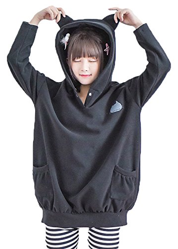 원본상품명: H2O LIFE 森ガ?ル系 レディ?ス トレ?ナ? パ?カ? 可愛い 猫耳 猫プリント ロング丈 プルオ?バ? 萌え (クロネコ)