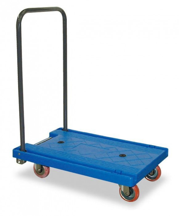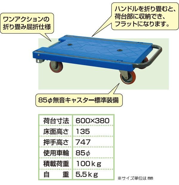 ワンアクションの折り畳み屈折仕様で使いやすい!! 製造国:日本 ※サプライヤー直送品 ご注文後3~4営業日後の出荷となります【商品名】アイケーキャリー 樹脂製 台車 ミニシリーズ (折りたたみ式ハンドル/無音キャスター仕様) PミニDX