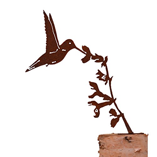 Elegant Garden Design Upright hummingbird on Salvia Flower, Steel Silhouette with a Rusty Patina