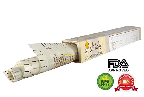 - Feature : 1. Lays Perfectly Flat on countertop or any other surface. Does not move or bunches up as you roll out the dough. Sticks super good to the counter or table, unlike the old fashioned ones. Making a pie or pizza crust from scratch, rolling out cookie dough or homemade biscuits is so much easier on this mat. / 4. Easy to Store and Maintain - Mat is very thin so it rolls up small to take up little space in the drawer. Freezer, oven and dishwasher safe - but cleans just as easily with soap and water for those who prefer hand washing / 2. Non-Stick Surface eliminates the need to use extra flour or oil to keep the pastry items from sticking to the surface when rolling them out. / 5. We Stand By Our Product - and believe that your satisfaction is our main priority. When you order from us today, you are protected by Amazon's A-Z guarantee. If for any reason our Sili Bake ® mat is not for you, please email our top-notch customer service for full refund, no questions asked. / 3. No Chemical Odors - Easy to clean and fold. Silicone of Highest Grade FDA Certified