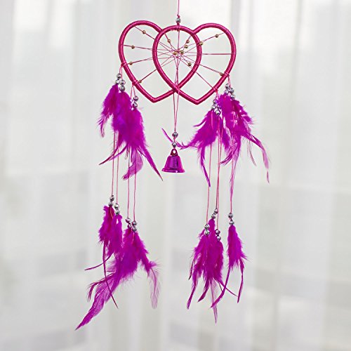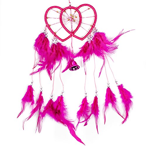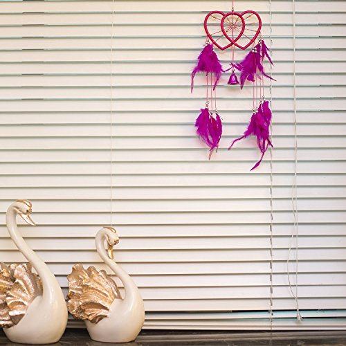 Sikolyn Heart Shape Natural Feathers Dreamcather(Pink)For Car Hanging Wall Deco Valentine's Day Gift