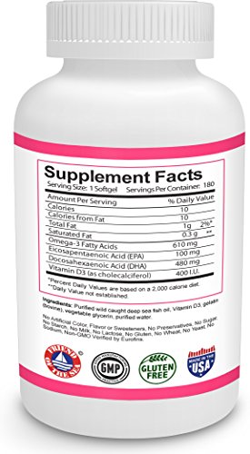 OPTIMUM DHA LEVEL :: Our Prenatal DHA formula supplies 480mg of DHA per softgel to support cardiovascular health, healthy vision & bone health for optimal development during the most important growth phases of pregnancy & breastfeeding. 400 I.U.s of Viatmin D3 per softgel also promotes positive mood and emotional well-being for for pregnant & nursing mothers.