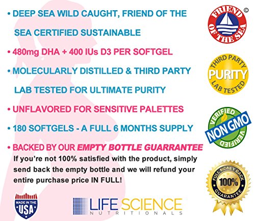 6 MONTH SUPPLY + LIFETIME SATISFACTION GUARRANTEE :: You get 180 Prenatal DHA softgels with each bottle, plus the Life Science Nutritionals "EMPTY BOTTLE GUARANTEE". If you're dissatisfied for any reason with ANY of our products, simply send back the empty bottle for a full, no questions asked, refund. Buy now by clicking the Add To Cart button!