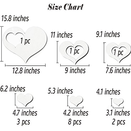 - 16PCS Heart-shaped mirror decals, the largest decal size:15.8 x 12.8 inches, the smallest decal size:4.1 x 3.1 inches