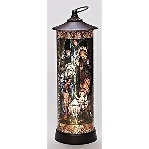 Roman Inc. 16" LED HOLY FAMILY CYLINDER STAINED GLASS LOOK Battery Operated Does Not Include Batteries