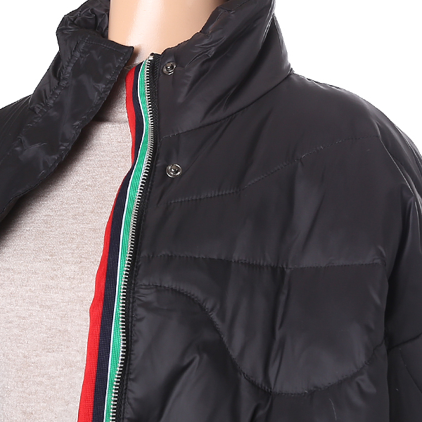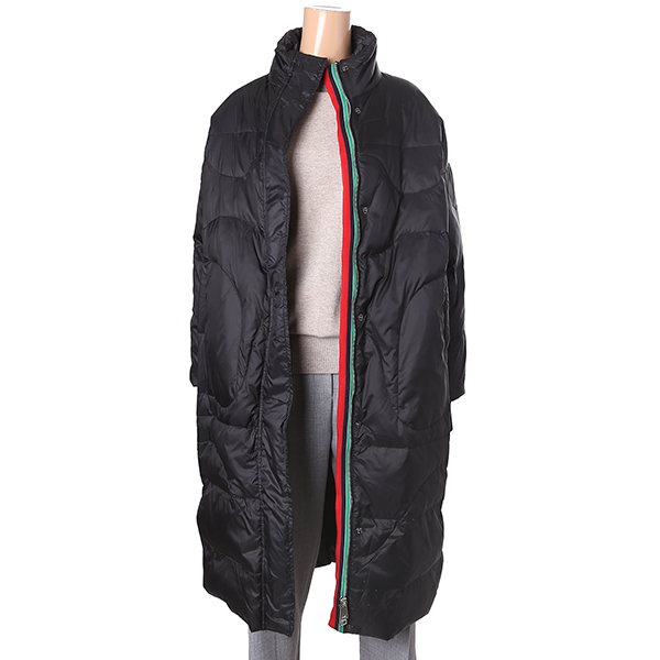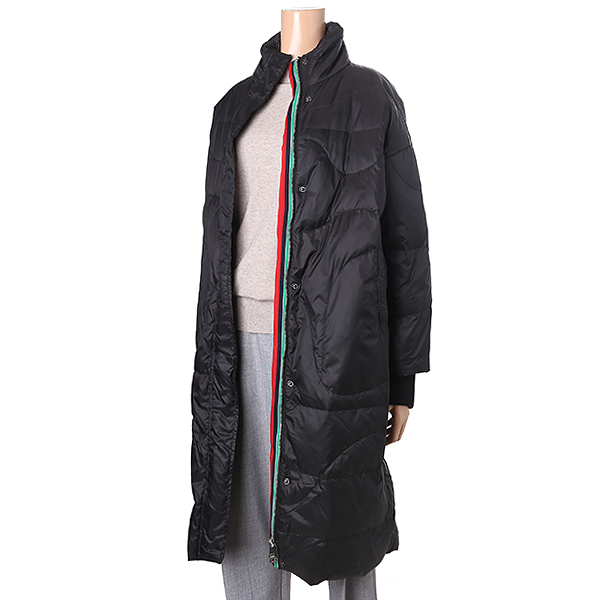 지퍼배색이 있는 덕다운 롱패딩입니다