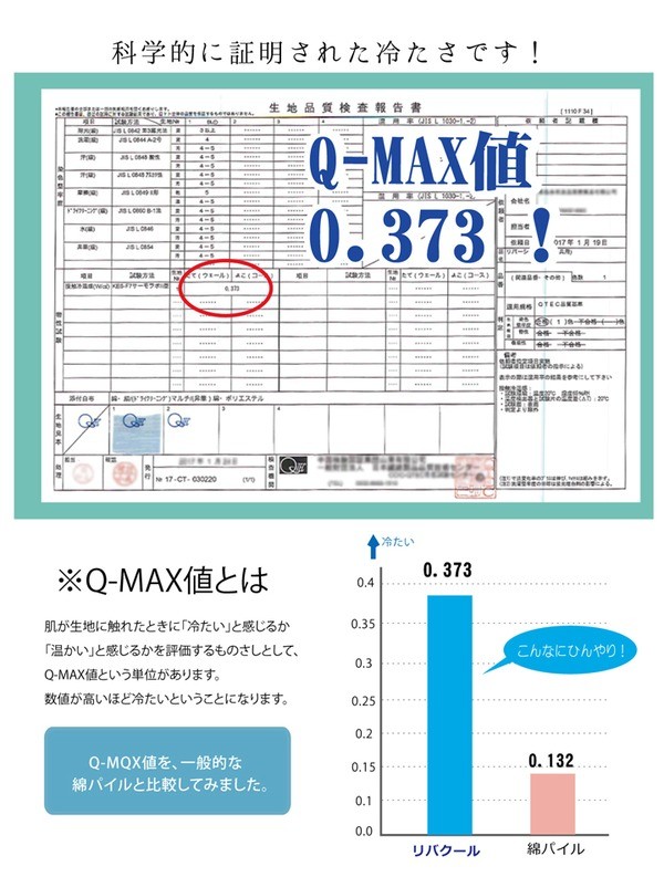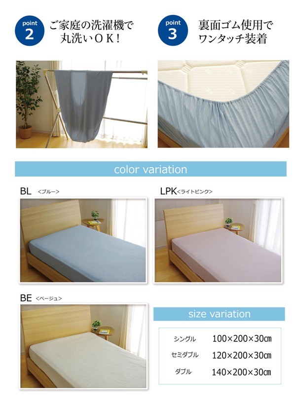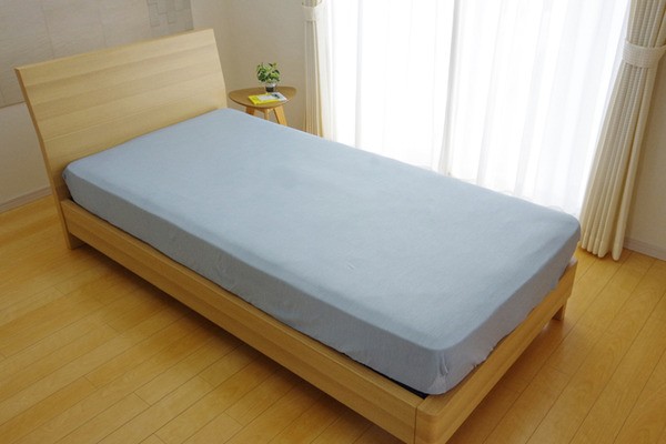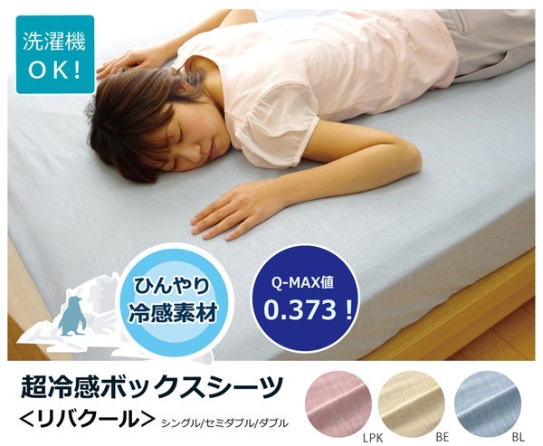 生地にナイロン素材を使用したの冷感ボックスシーツです。生地にはナイロンにメーカーの技術で冷感を高める工夫をした生地を使用しています。肌が生地に触れたときに「冷たい」と感じるか「あたたかい」と感じるかを評価するものさしとしてQ-MAX値という単位があります(数値が高いほど冷たい)。本商品はQ-MAX値0.373です。エアコンが苦手な方でも快適に、節電、節約にもつながる商品です。ご家庭の洗濯機で洗える(ネット使用)ので清潔にご使用頂けます。