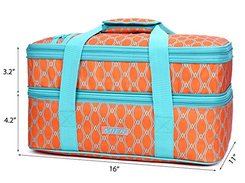 Features: Roomy cooler bag use for crowd to share food --- This potluck insulated cooler bag is perfect for taking casseroles to friends house, bring pizza to a party, go on a car trip on weekends with your family to have a picnic. Handy food carrier with zipper closure --- Each layer has two zip puller, very convenient to put food in. Easy to fold or expand. A large top zipper pocket for putting tableware, tissue and other small things About MIER For more than 10 years, MIER has created products to help all who carry the stuff he/she need, where in the most functional and fashionable way possible. MIER always absorbing global fresh ideas, create " interesting, sporty, sophisticated" style and features. MIER Brand continue to bring our customers the joviality and pleasantly surprised, express the unique personality of refined lifestyle. Manufacturer Warranty: MIER Equipment is warranted to be free from defects in materials and workmanship for the life of the product. The warranty applies when the product is used for the purpose intended, under normal conditions, and does not apply to damages caused by typical wear and tear, unreasonable use, or neglect. Warnings: Mierlife is the only legal owner and seller of the trademark MIER, we are not responsible for the fakes you bought from other tortious seller. Please be careful. 0