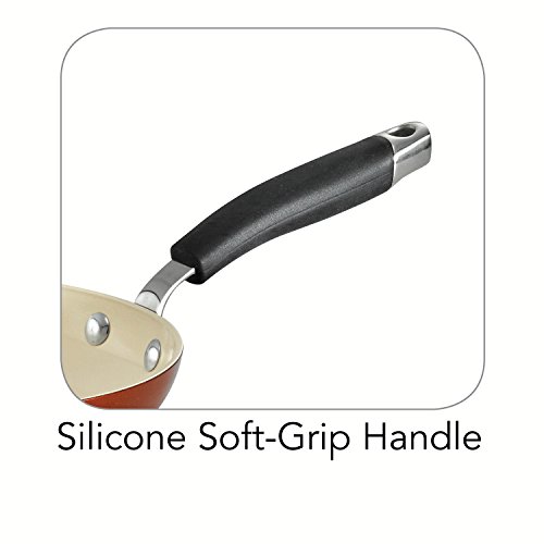 -. Feature : Heavy-gauge, porcelain enameled aluminum provides even heating / PFOA and lead-free ceramic non-stick interior / Riveted cast stainless steel handle with silicone soft-grip / Oven-safe up to 350 degrees F; dishwasher-safe / Your choice of size