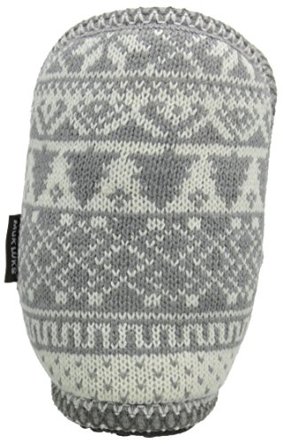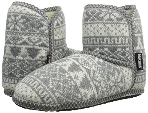 Soft hues of grey and ivory in a woodland nordic pattern that’s in a bootie shape and comes just above your ankle