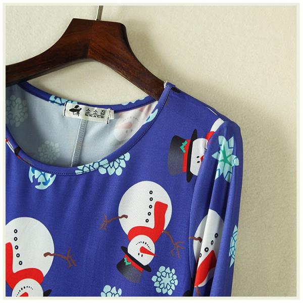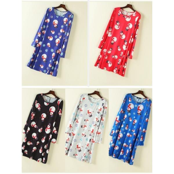 ランダムに散りばめられた雪だるまプリントが大人ガーリーな膝丈ワンピース。