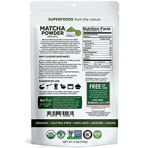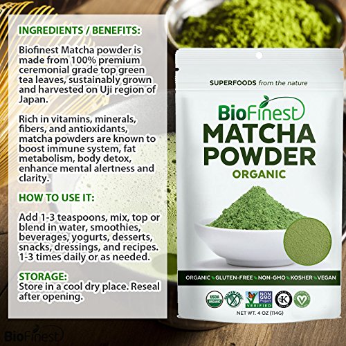 -. Title : Biofinest Matcha Green Tea Powder - 100% Japanese Premium Ceremonial Grade - USDA Certified Organic Raw Vegan Non-GMO - Boost Digestion Detox - For Smoothie Latte Tea Beverage Baking Blend (4 oz)