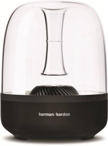 The Harman Kardon Aura, a home audio system combining the ultra-modern performance and precision of a hi-fi luxury sound system, also boasts a unique, iconic design. The Aura’s has a sound as rich and rewarding as its appearance with six high- and mid-range transducers plus a built-in subwoofer delivering superior, Omni-directional, 360º sound – while elite features like built-in Bluetooth, Apple AirPlay lossless audio streaming and DLNA introduce you to the convenience and multi-function advantages of complete connectivity.