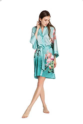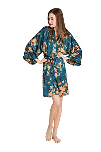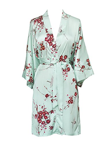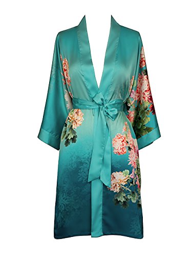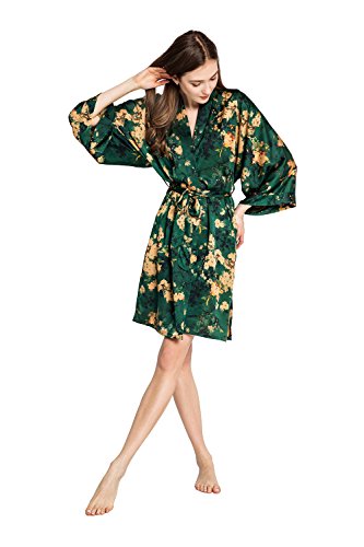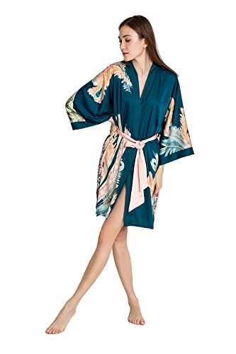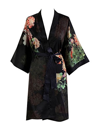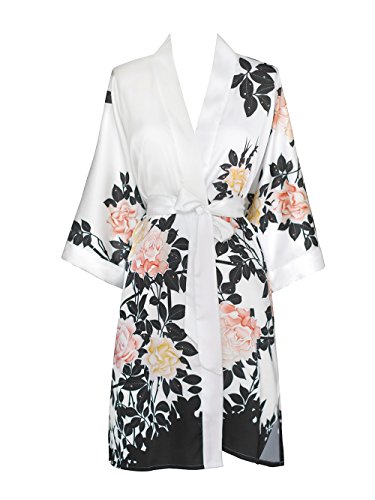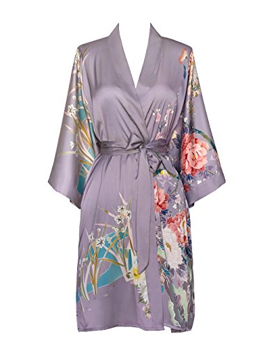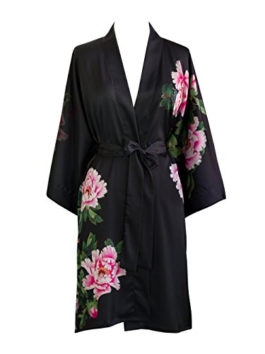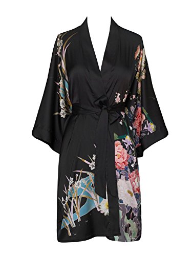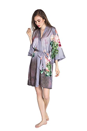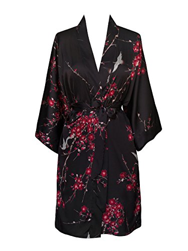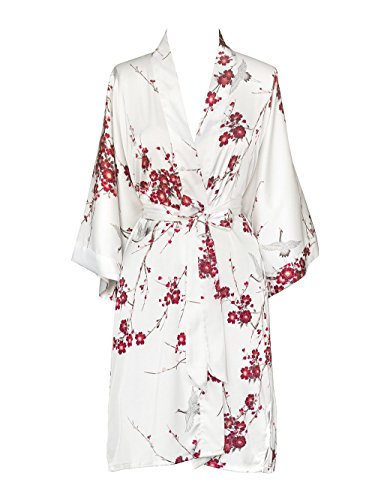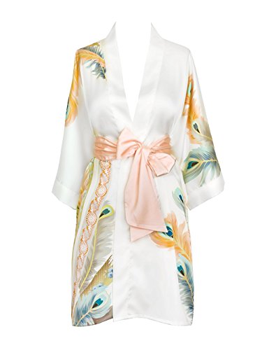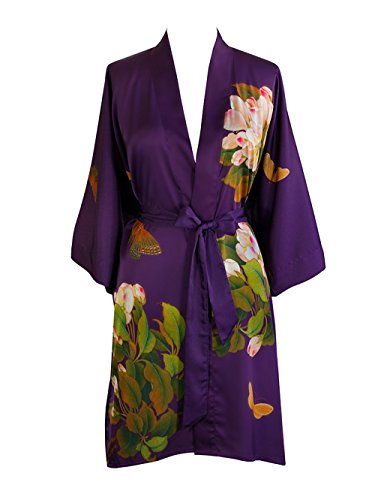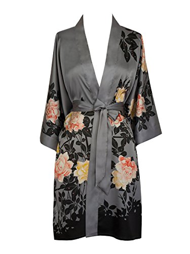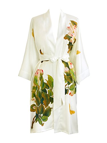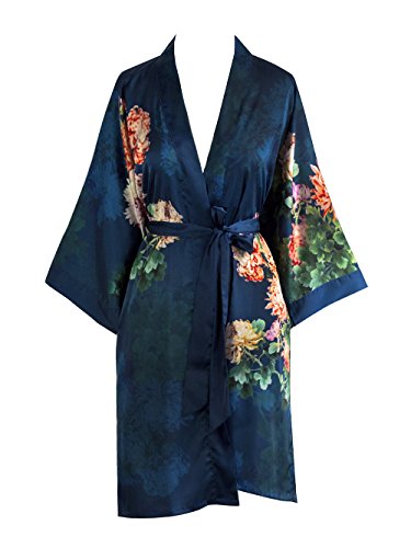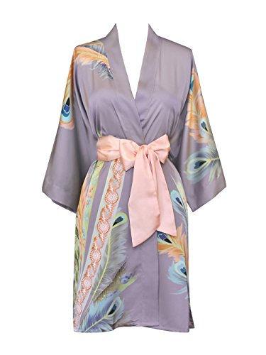 Exclusively ours, enjoy every day luxury in printed silky charmeuse robe. An ideal lounge kimono, a practical and pretty dressing gown for bride and bridal party, or a comfortable and beautiful robe for a new mom. French seam construction throughout assures a lifetime of enjoyment with sash tie closure, belt loops and inside tie. Imported. Machine wash cold, gentle cycle, hang dry. *For more information, please contact us before purchase.Feature