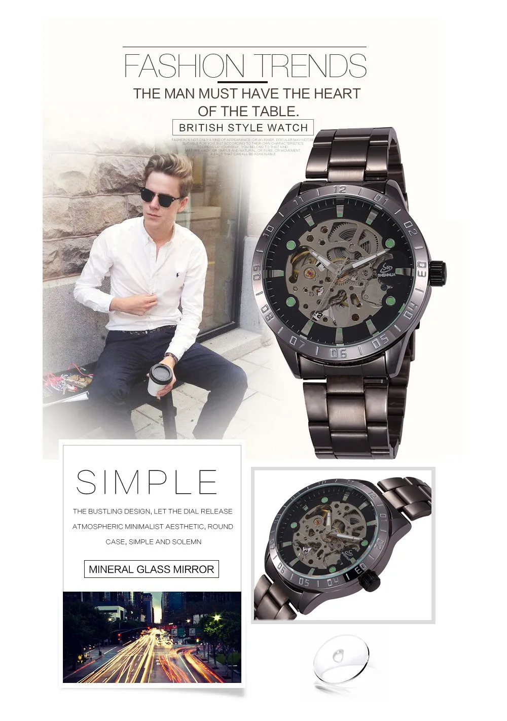 man clock watch :waterproof mechanical watch