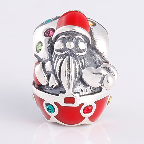 -. Title : Christmas Tree Charms Authentic 925 Sterling Silver Reindeer Christmas Stocking Santa Claus Bead Charms for Xmas Gift