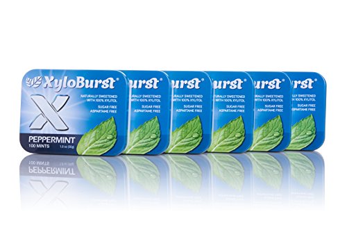 Studio : XyloBurst Publisher : XyloBurst Binding : Grocery Product Description XyloBurst 100ct Peppermint Mint Tins (Six Pack), so convenient you can take them anywhere. XyloBurst mints are sugar-free and sweetened exclusively with 100% all-natural xylitol! Professional studies have shown that consuming products with high amounts of xylitol, along with daily brushing, may reduce the risk of dental cares. Just like XyloBurst gum, XyloBurst mints will leave your mouth feeling clean and refreshed. And remember 6 to 8 grams each day is recommended to help improve oral health. Daily Tips ?Consume 1 to 2 XyloBurst mints daily in between each meal ?Chew XyloBurst gum after each meal ?Don't tell your kids it's sugar-free Ingredients: Xylitol, natural peppermint flavor and natural hibiscus powder. 0