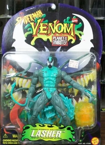 -. Binding : Toy -. Brand : Toy Biz -. EAN : 0035112472438 -. Feature : Small parts, not for Childern under 3 years of age. / For ages 5 years plus. / Marvel Comics, Toy Biz -. IsAdultProduct : 0 -. Label : toy biz -. LegalDisclaimer : Choking hazard- not for children under 3 years. -. Manufacturer : toy biz -. PackageQuantity : 1 -. ProductGroup : Toy -. ProductTypeName : TOYS_AND_GAMES -. Publisher : toy biz -. Studio : toy biz -. Title : Marvel Comics Spider- Man Venom Planet of the Symbiotes! Lasher -. UPC : 035112472438